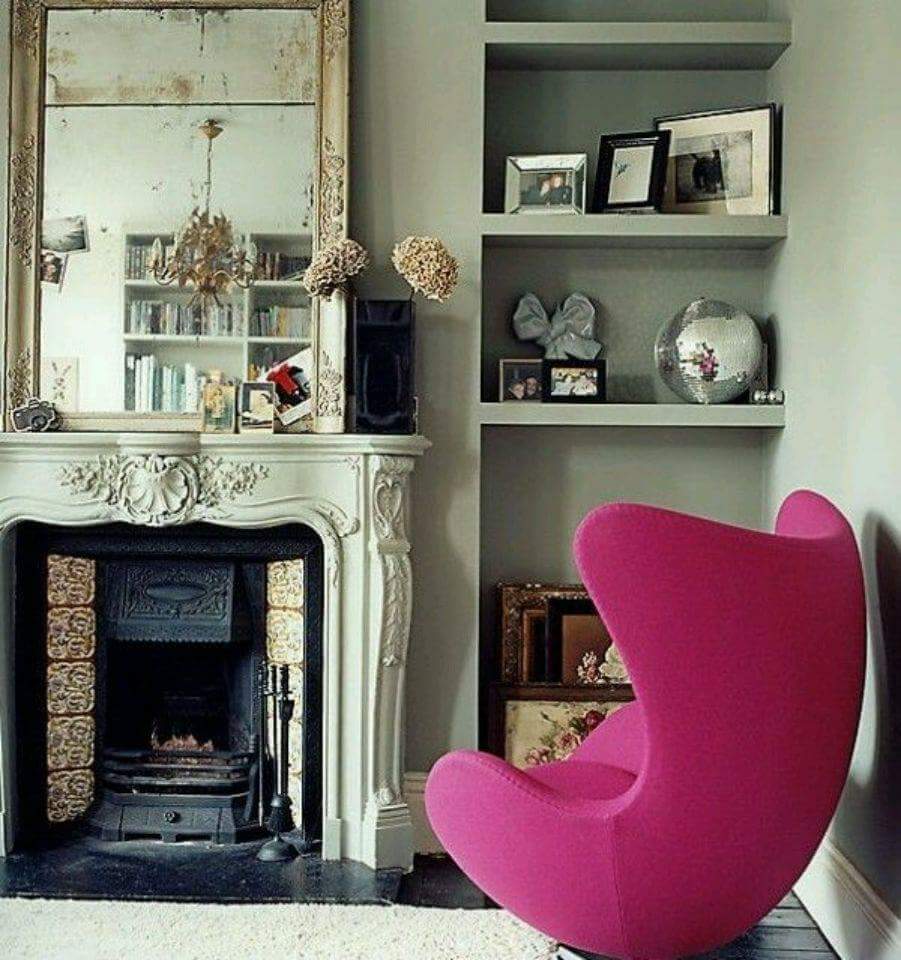 Antico e Moderno. Ecco come abbinare un caminetto Luigi XV con una poltrona Egg disegnata dal famoso Arne Jacobsen (1956)