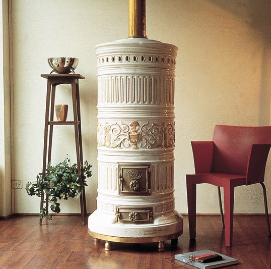 Questo modello è quello cilindrico tipico del gusto neoclassico, venuto di moda tra Settecento e Ottocento e poi ripreso nel Novecento con decorazioni più fitte. L’esecuzione è quella tradizionale: nessuna modifica visibile del modello originale e stesso giro di fumi. È un oggetto di affezione non paragonabile con le moderne stufe a pellet, che sono certamente più pratiche ma meno suggestive e ricche di risonanze della memoria.