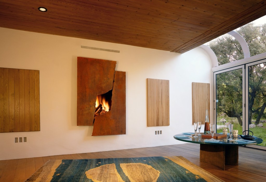 Camino-scultura con focolare da incasso